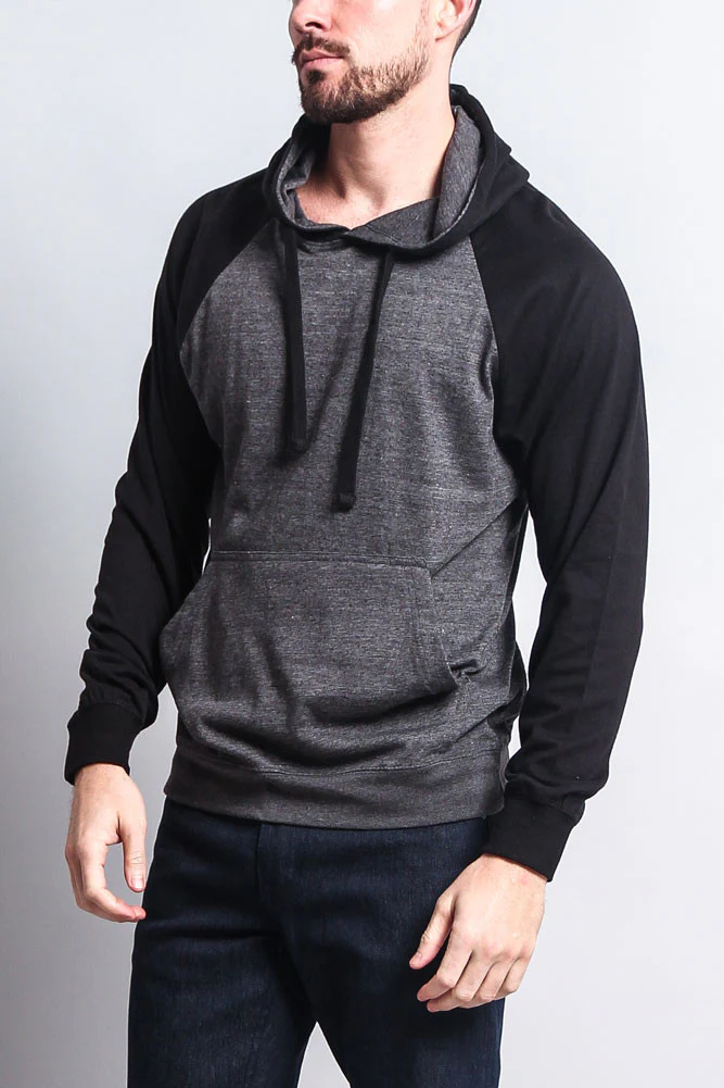 Lightweight Contrast Raglan Sleeve Pullover Hoodie